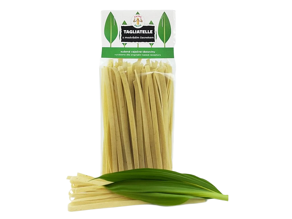 Oblíbené dlouhé široké těstoviny pro vás máme ve voňavé variantě, ochucené poctivým českým medvědím česnekem. Tuto originální variantu klasických tagliatelle jistě ocení každý milovník netradičních chutí. Díky kvalitním surovinám a poctivé řemeslné výrobě můžete očekávat prvotřídní gastronomický zážitek ve vaší kuchyni.