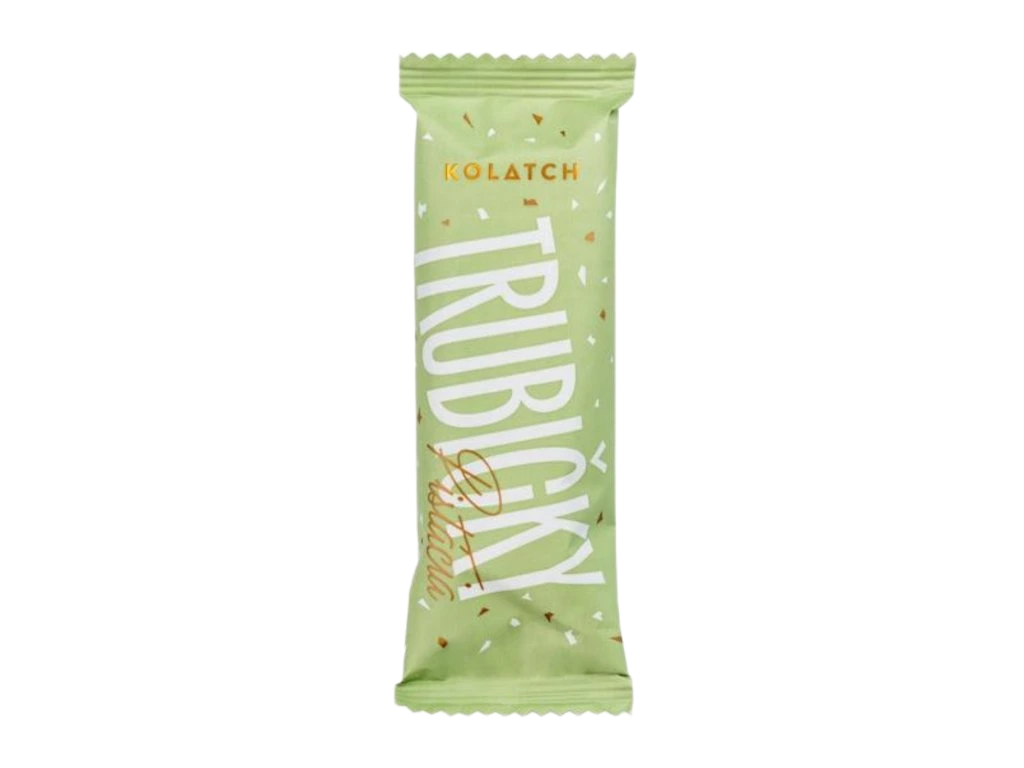 Složení: bílá čokoláda s pistáciemi 38 % (cukr, kakaové máslo, sušené mléko plnotučné, pistácie 8 %, emulgátor: sójový lecitin, přírodní vanilkové aroma), pistácie (32 %), třtinový cukr, mandle, pšeničná mouka, cukr, olivový olej, sušené mléko odtučněné, kukuřičný škrob, kokosový tuk, sušený vaječný žloutek, emulgátor: slunečnicový lecitin, kypřící látka (hydrogenuhličitan sodný), sůl. Výrobek může obsahovat arašídy a jiné ořechy.