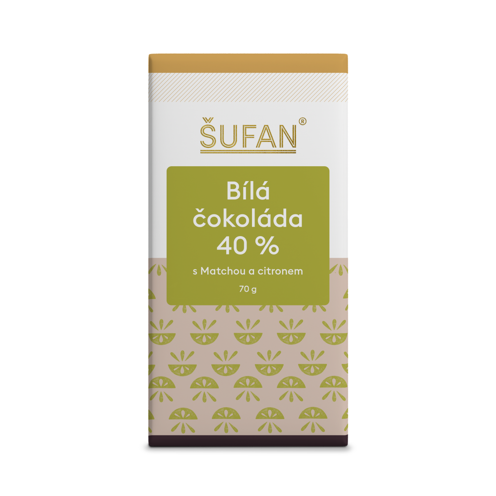 Šufan - Bílá čokoláda 40% s matchou a citronem 70g