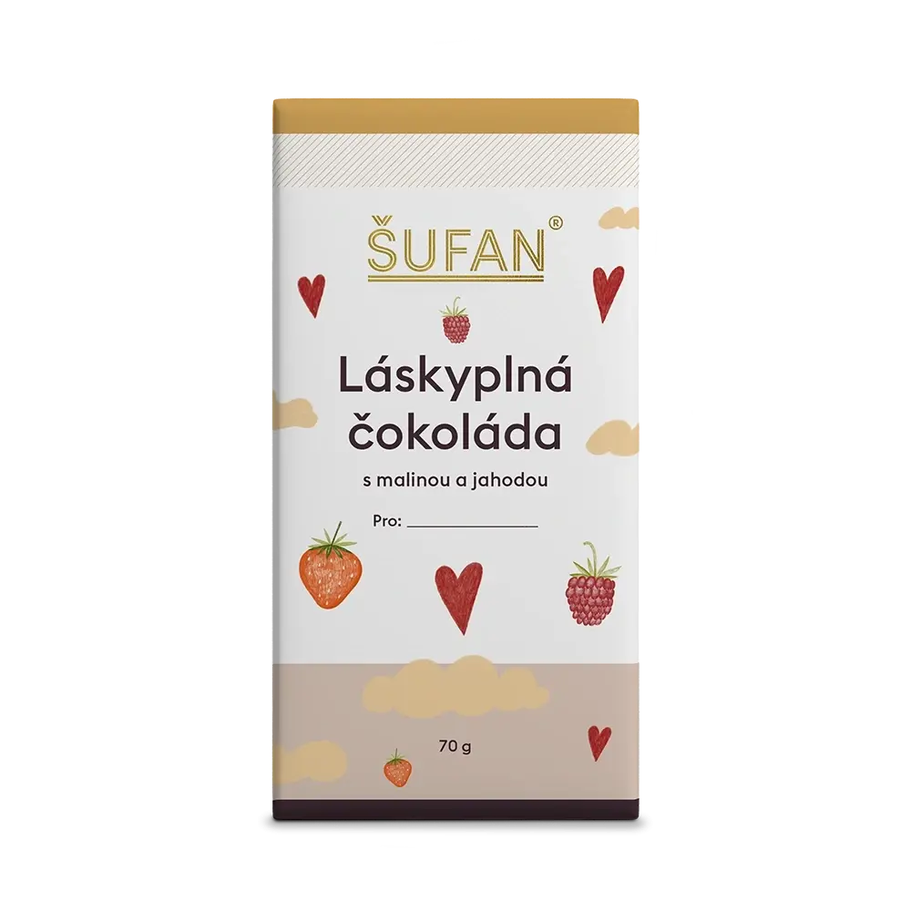 Šufan - Láskyplná čokoláda s malinou a jahodou 70g